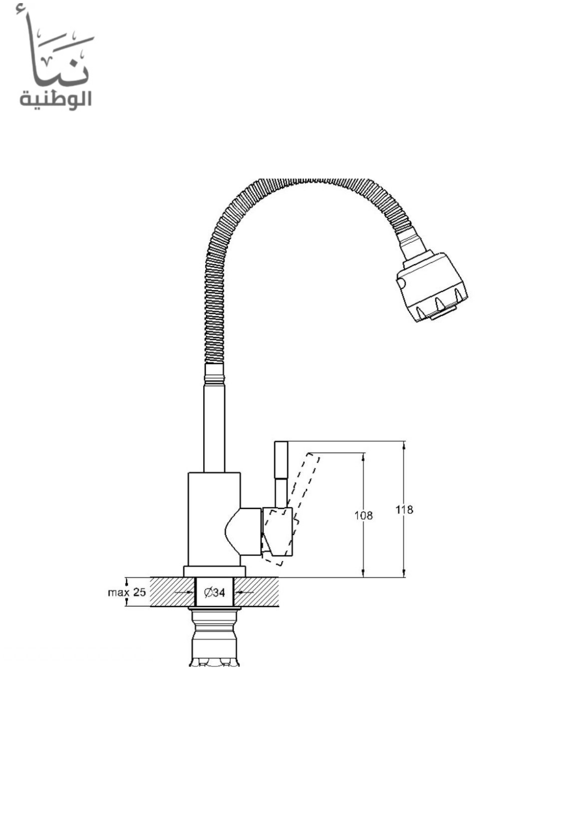 يتميز الخلاط بطلاء مطفي أنيق يمنحه مظهرًا راقيًا ويقلل من ظهور البصمات والخدوش، ما يجعله مثاليًا للمطابخ العصرية. الرقبة المتحركة (Swivel Spout) تتيح لك التحكم في اتجاه تدفق المياه بكل سهولة، لتناسب مختلف أوضاع غسيل الصحون أو الأواني.