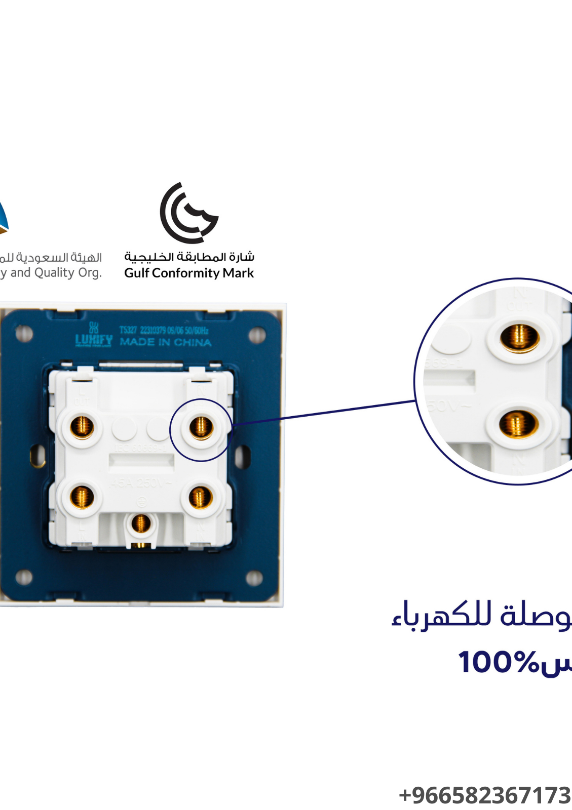 مصمم بمعايير احترافية تناسب أنظمة الكهرباء في المنازل والمشاريع التجارية، ويأتي بقياس 7×14 سم المثالي للتركيب ضمن لوحات المقابس القياسية.